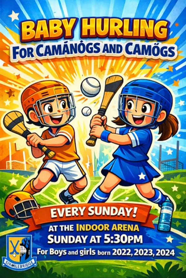 If your child is born in 2022,2023 or 2024 come down and expierence Baby Hurling on Sunday evening at 5.30pm in the Arena.