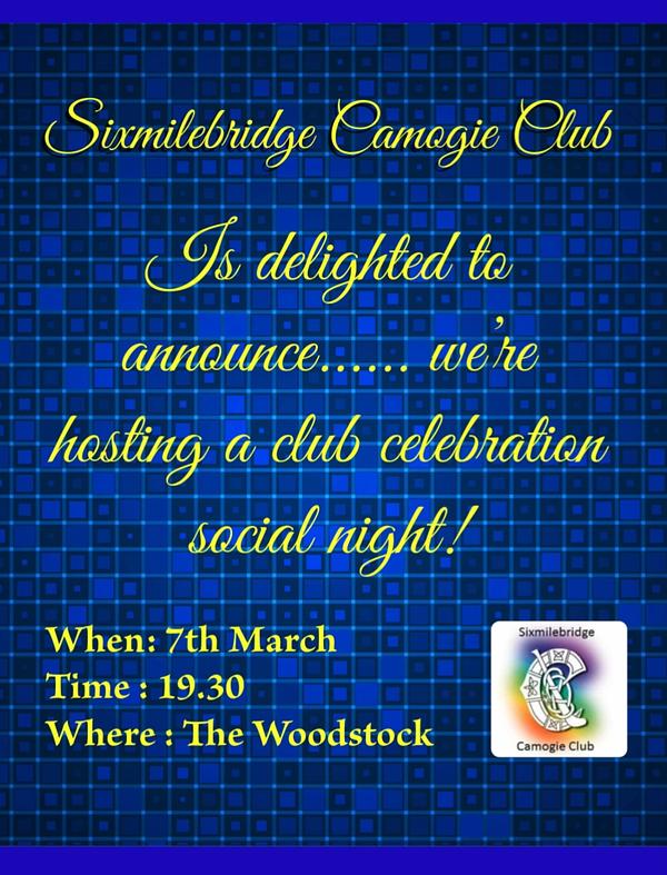 To mark our growth and development as a club we are excited to host a Sixmilebridge Club Social evening.